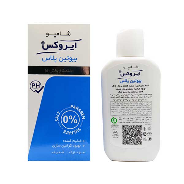 شامپو فاقد سولفات ایروکس استحکام بخش مدل Biotin Plus حجم 200 ml